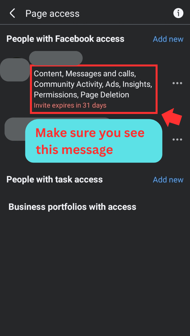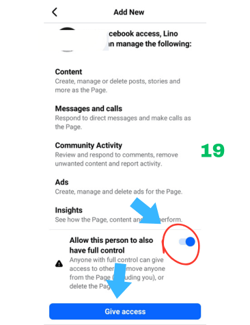 To give this Facebook profile account your page access —see the steeps--